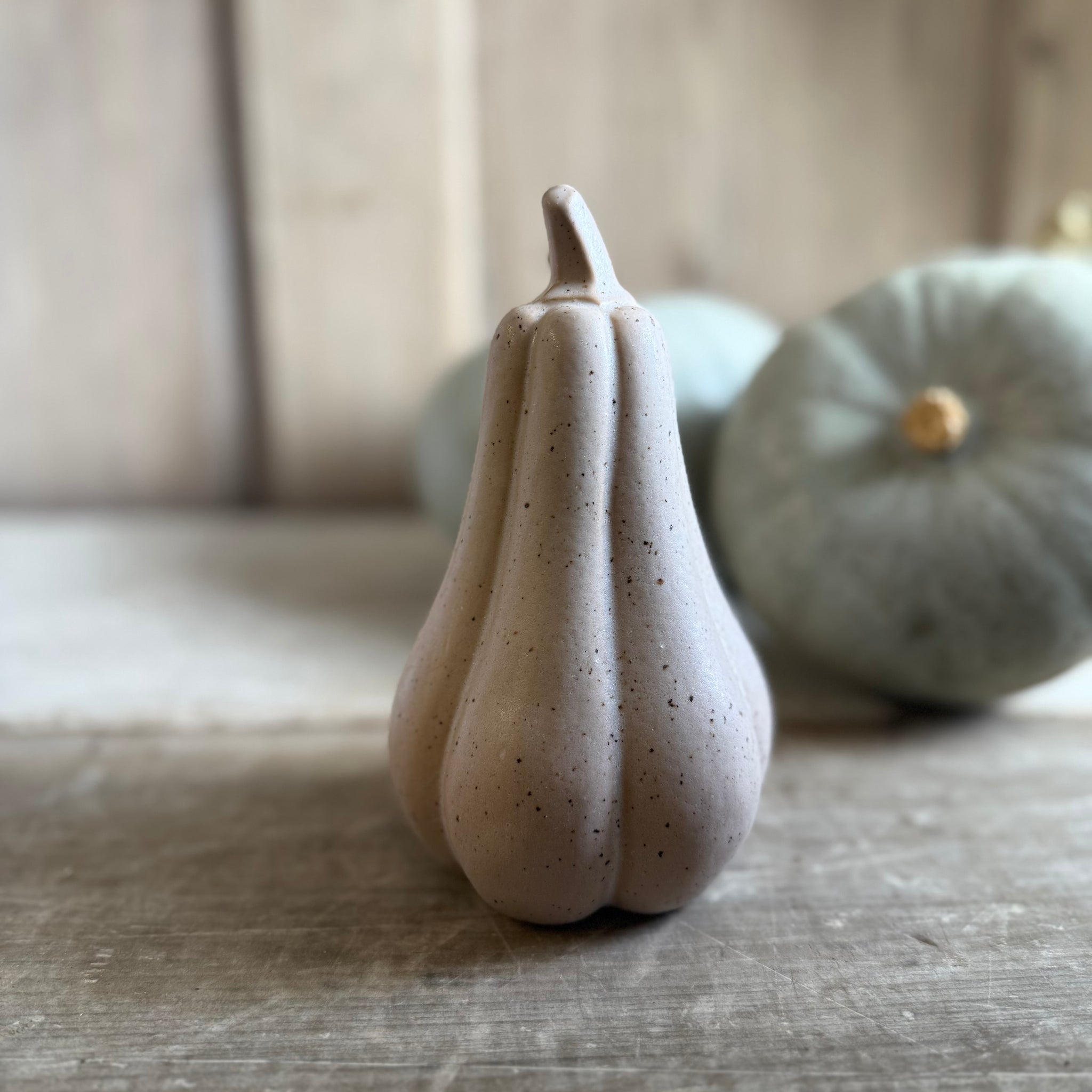 This beautiful ceramic ornament features a natural tone with speckled detailing, adding a touch of charm and warmth to any room. The pumpkin shape adds a festive touch, making it a versatile piece for Halloween or Thanksgiving.