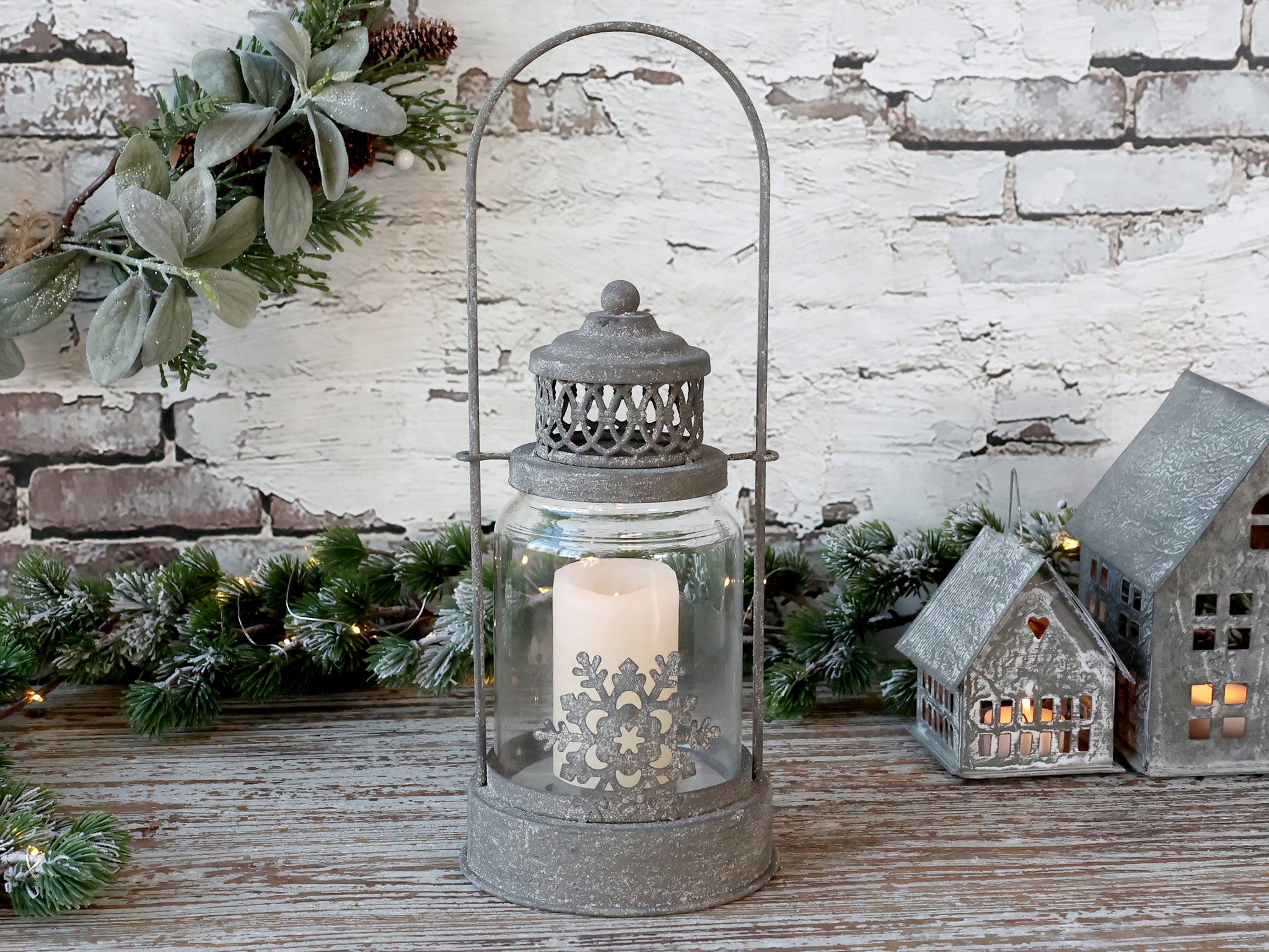 Antique Grey Snowflake Lantern