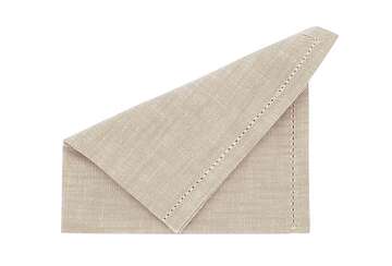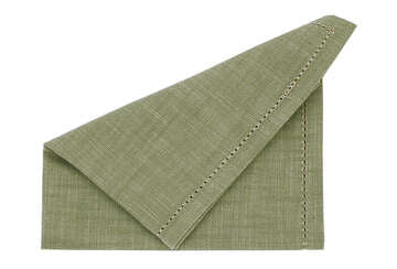 Olive napkins woven in 100% cotton chambray with the look and feel of linen and finished with a needled out border.