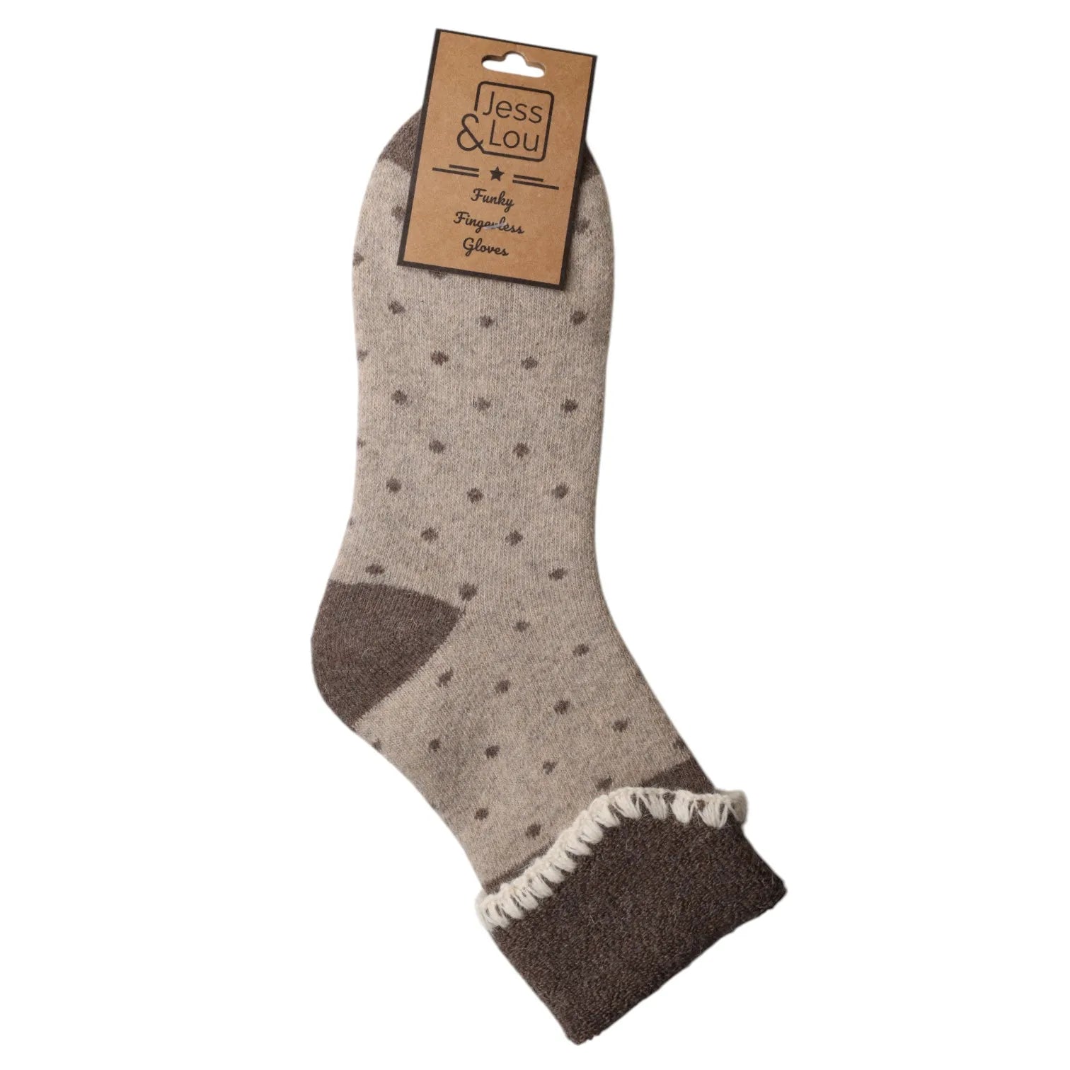 • Oatmeal/taupe sock with cappuccino spots & trim