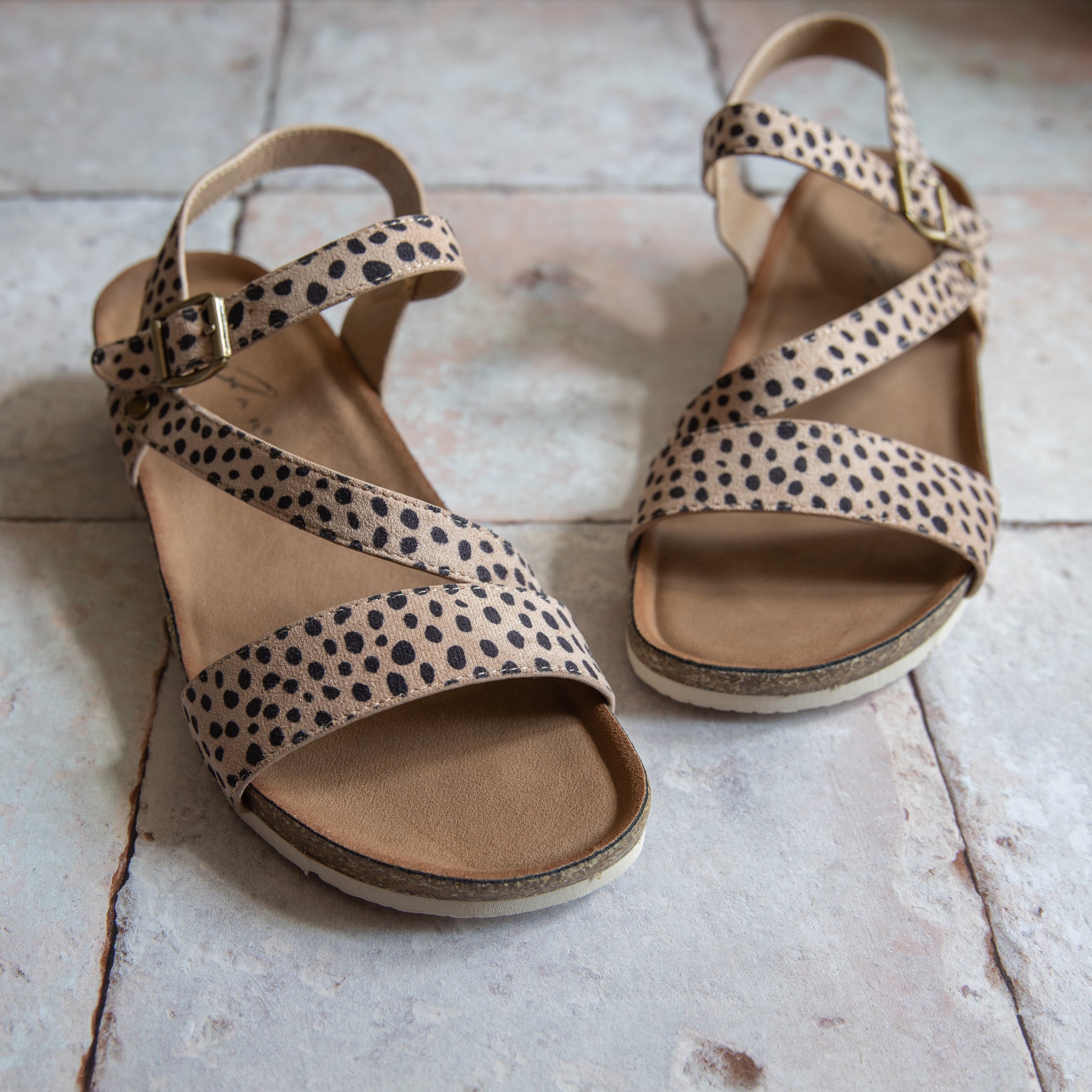 Stay stylish, stay comfortable - the Muster sandal is your best summer accessory. Boasting trendy leopard print straps, a padded insole and comfortable low wedge for subtle lift, the Muster will be your go-to for fashion and comfort. Pair with neutrals or denim for a standout look that lets your shoes do the talking. For a bolder look, wear with a matching leopard print dress or blouse for a standout style.