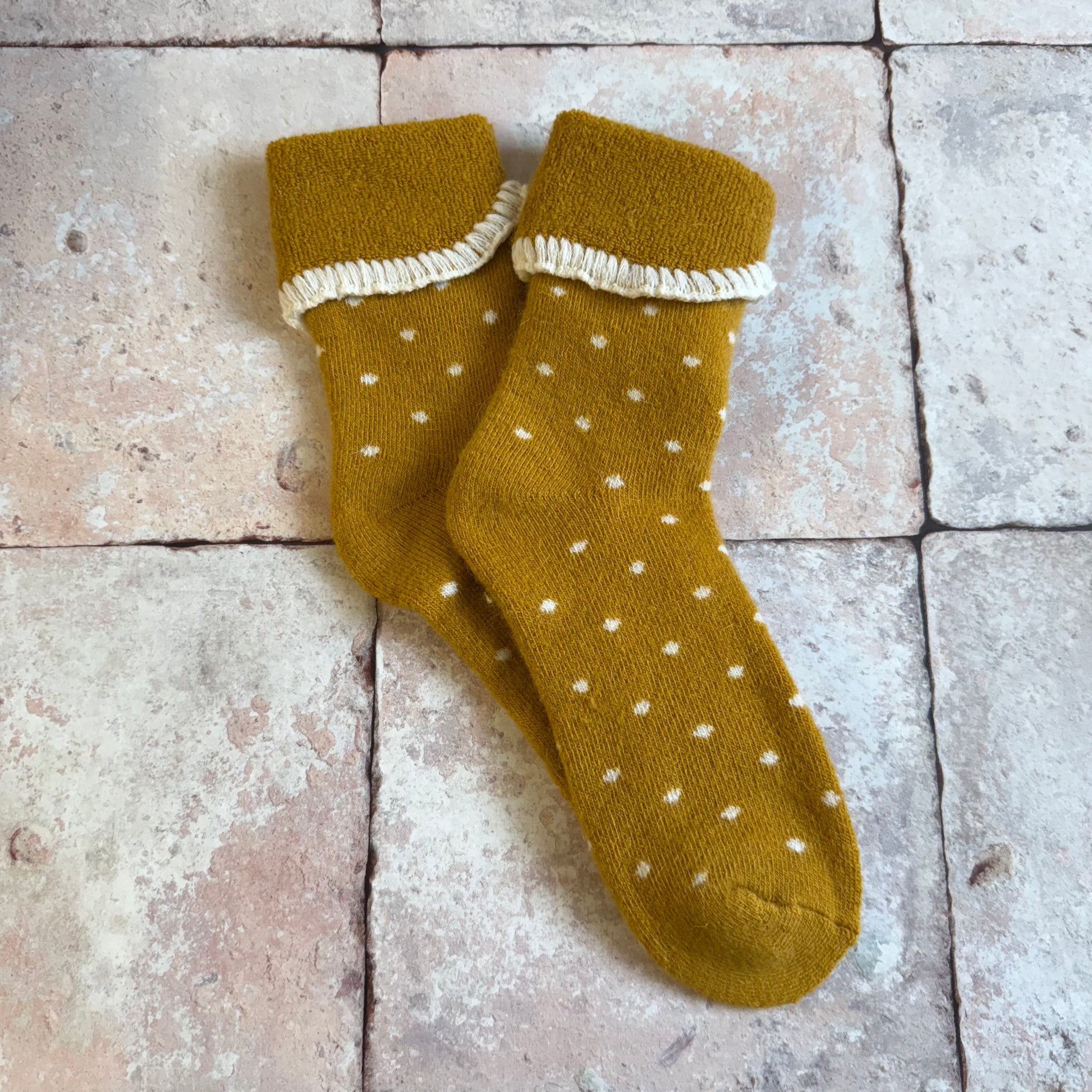 Stylish Cosy Toes snuggly cuffed socks with dots.