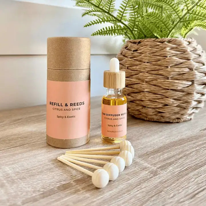 Contains refill bottle with enough fragrance for 3 refills & 6 reeds.
