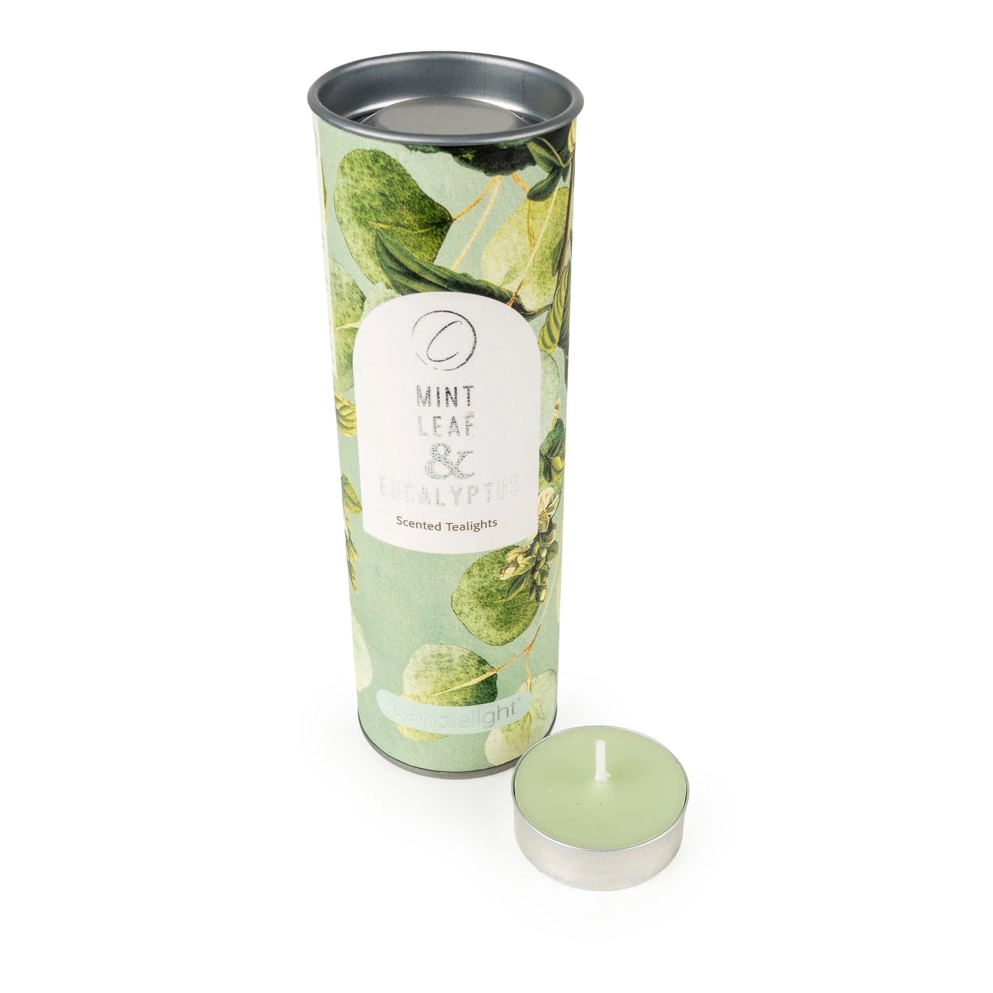 Revive your space with the cool, uplifting scent of our 9 Pack Tealights Mint Leaf & Eucalyptus, where crisp mint meets soothing eucalyptus for a spa fresh ambience. Each petite, pale green candle is perfect for bathrooms, kitchens, or cosy corners, creating a clean and revitalising fragrance that feels airy and bright.