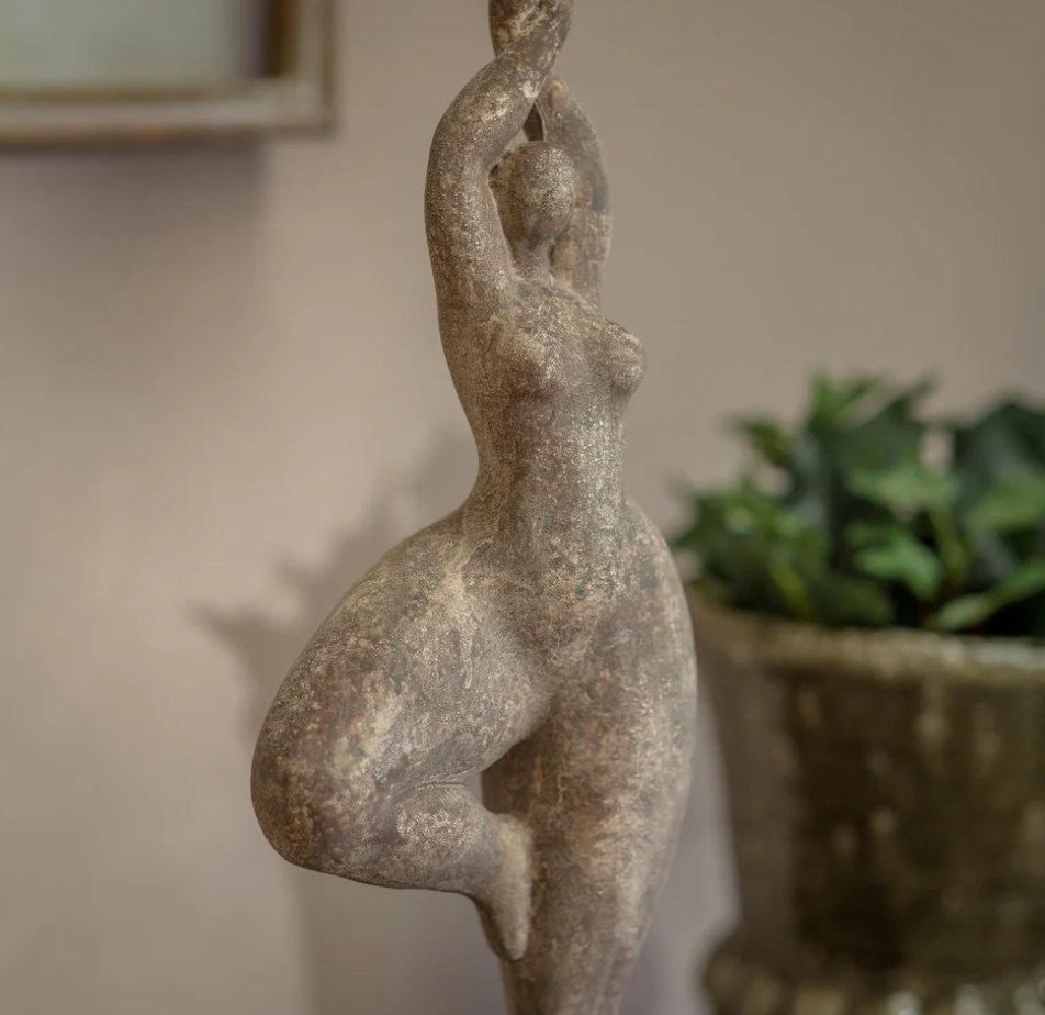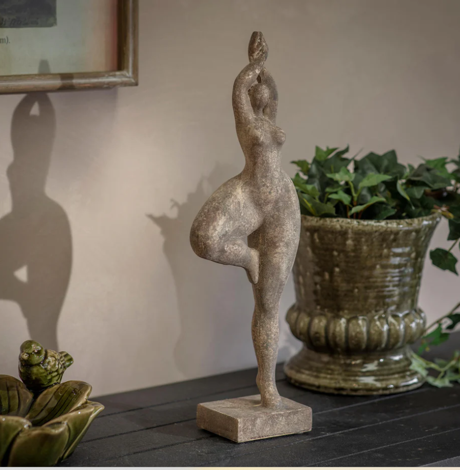 Bringing a sense of calm and balance to interior spaces. Crafted with a stone-effect finish, its elegant pose and tall silhouette create a quietly striking decorative statement. Set on a simple plinth, it’s ideal for consoles, shelves or bedside styling, adding a mindful, nature-toned accent that feels contemporary yet timeless.