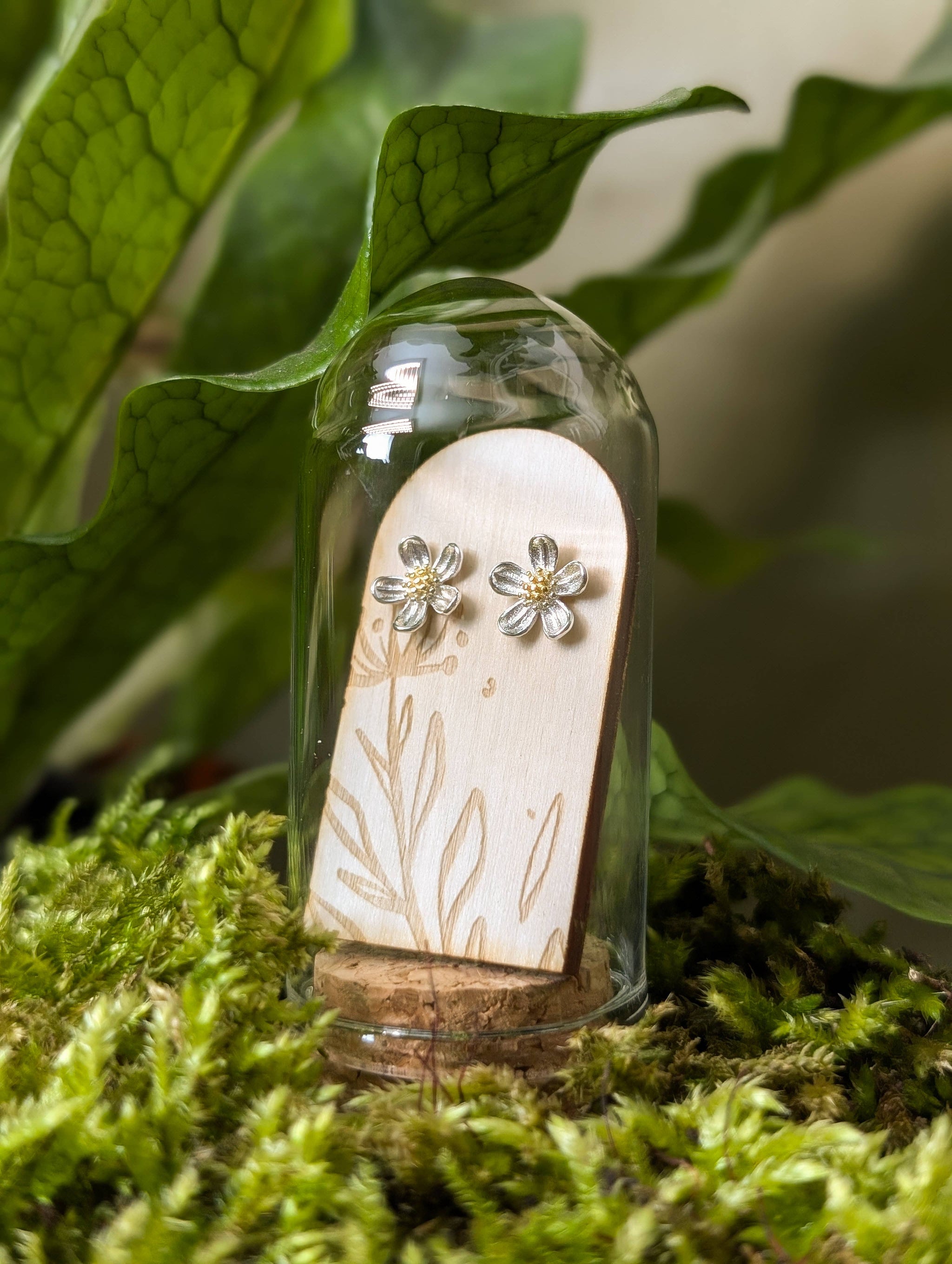 Flower Sterling Silver with Gold Centre Studs