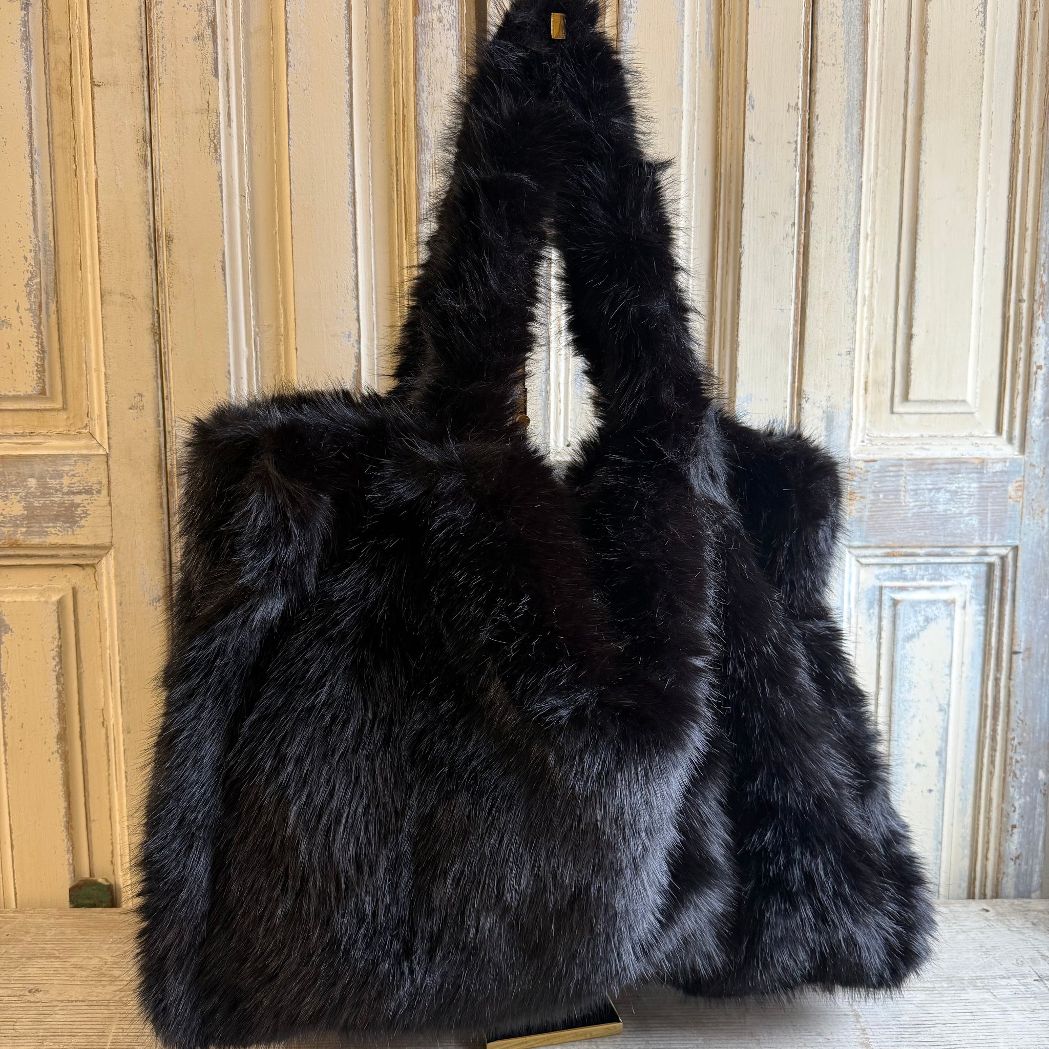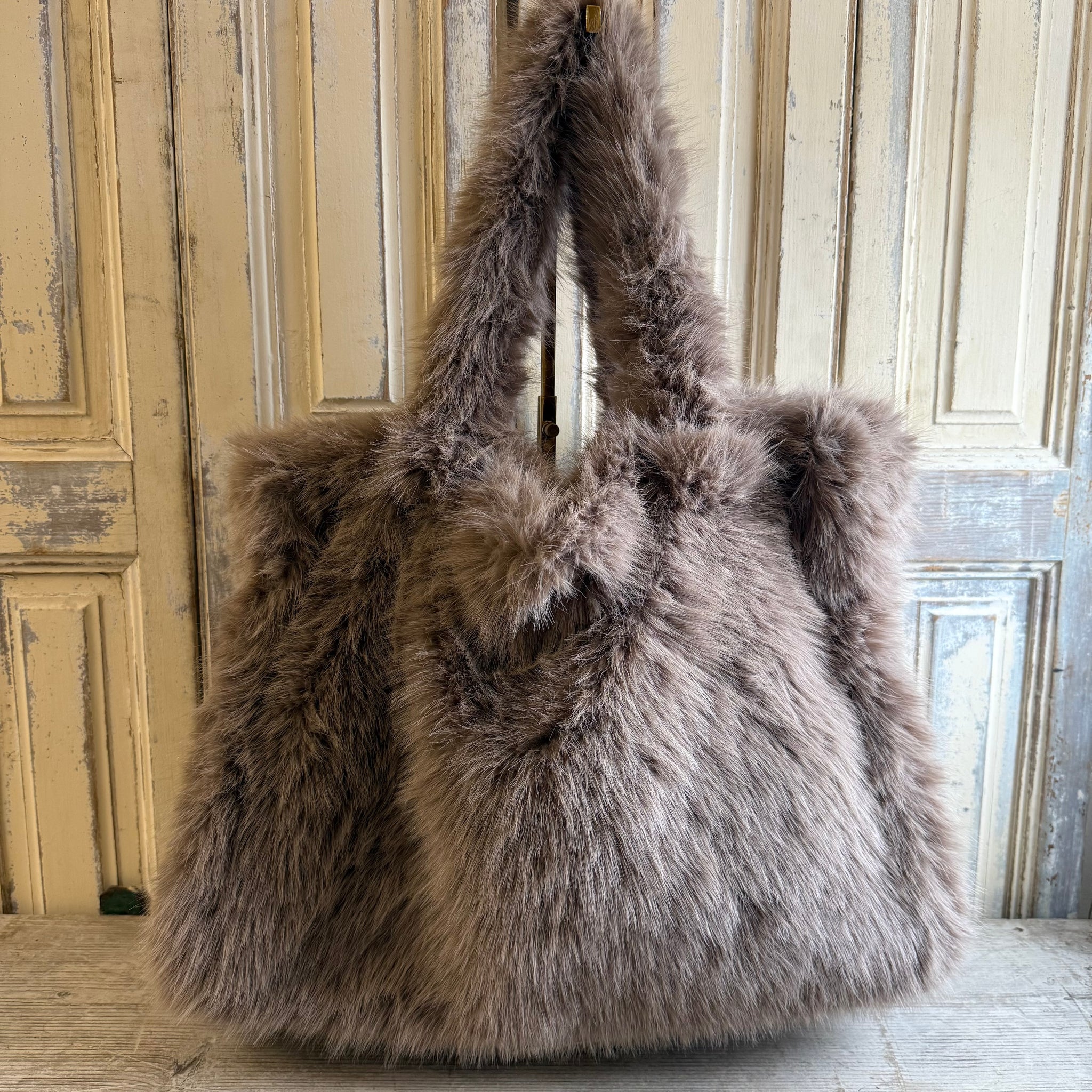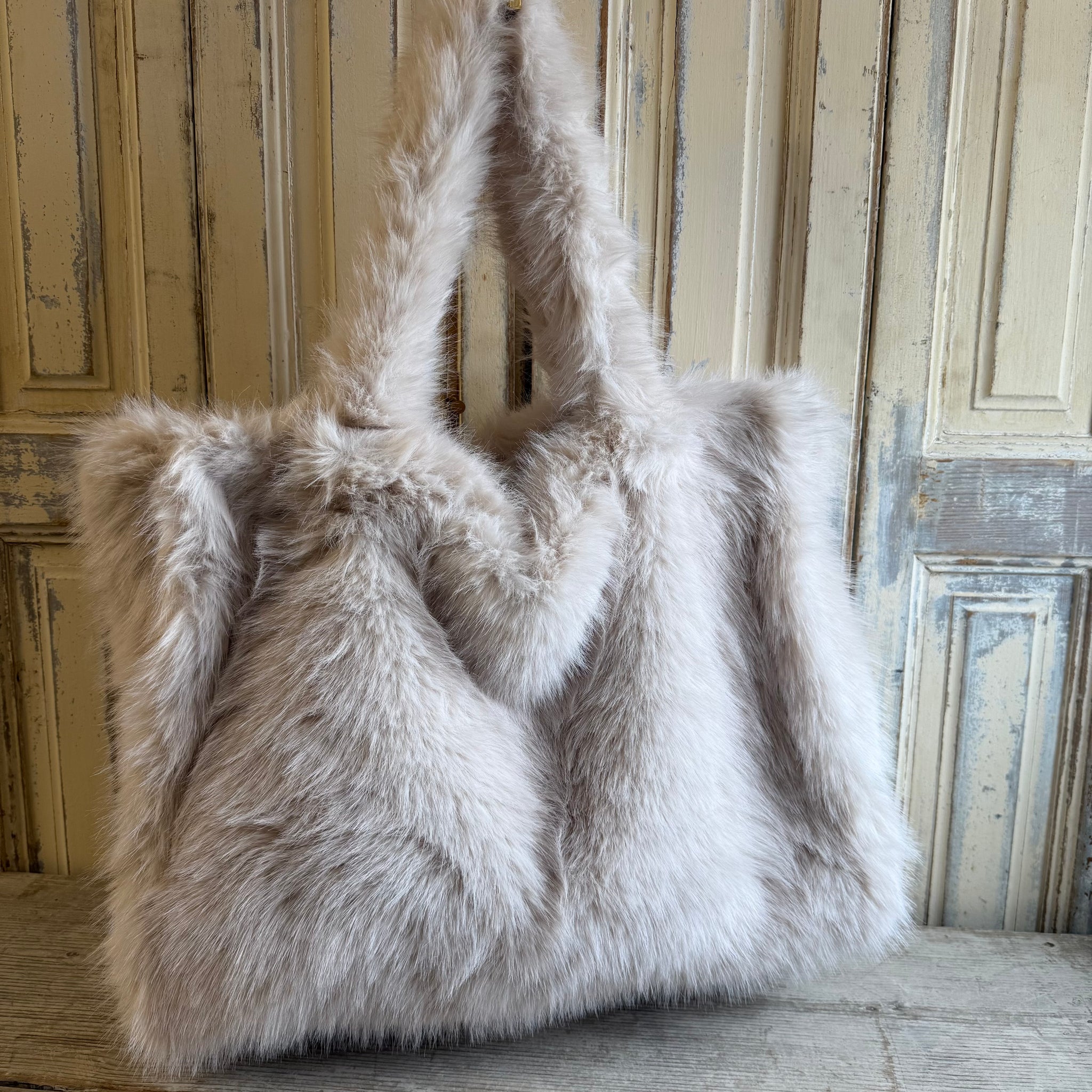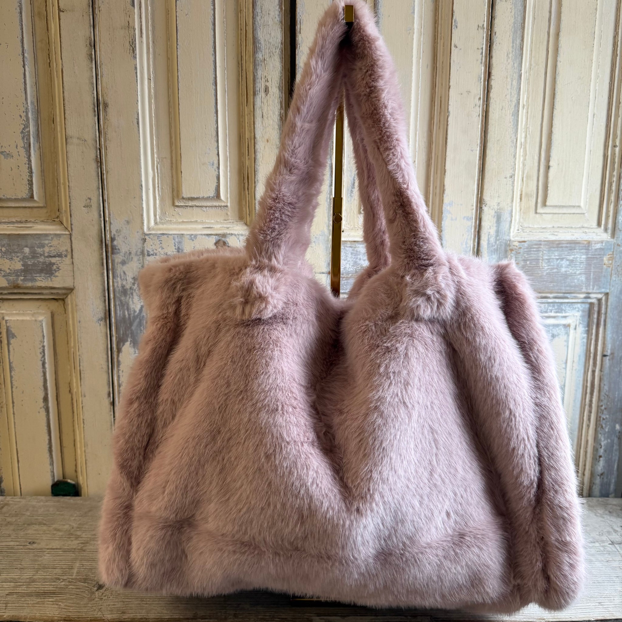 please note the pink bag is a less fluffy faux fur and is slightly smaller