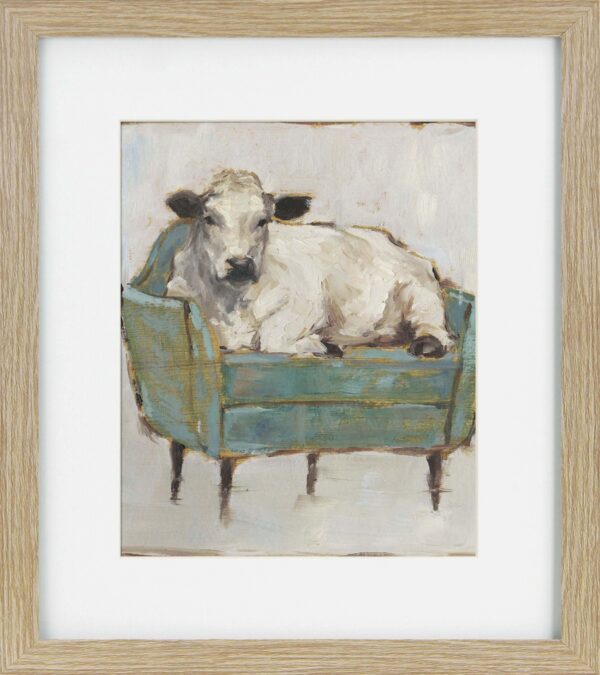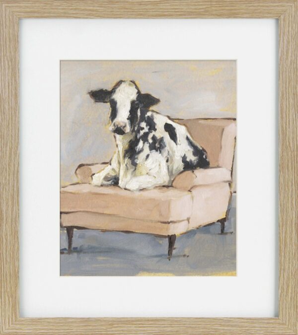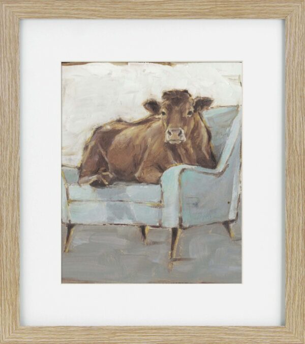 Our Moo-ving In prints are perfect for hanging alone, in pairs or more! These prints have been framed in a simple, narrow brown profile with a white mount.