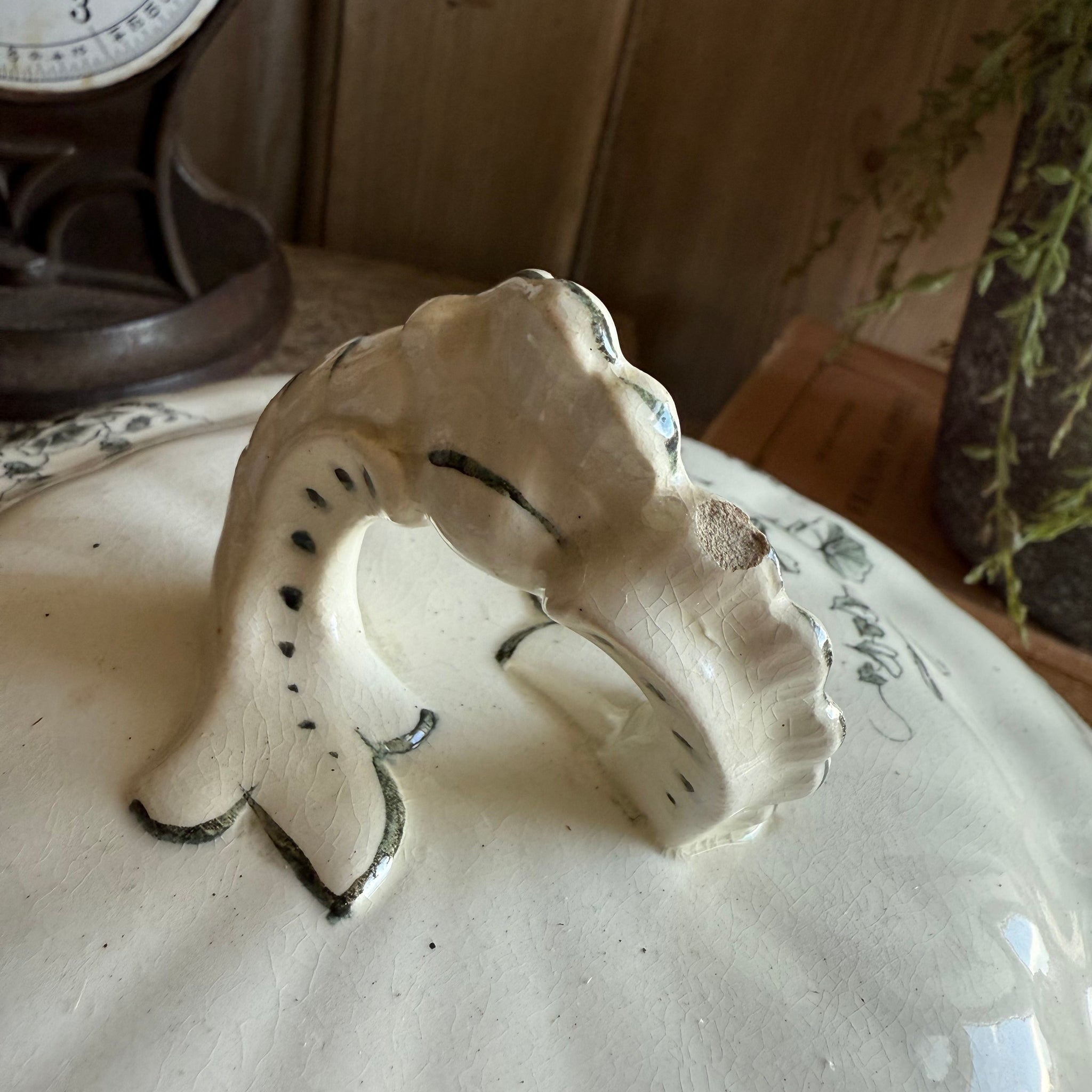 I just love the beautiful deep green colouring on this aged Soupiere.
