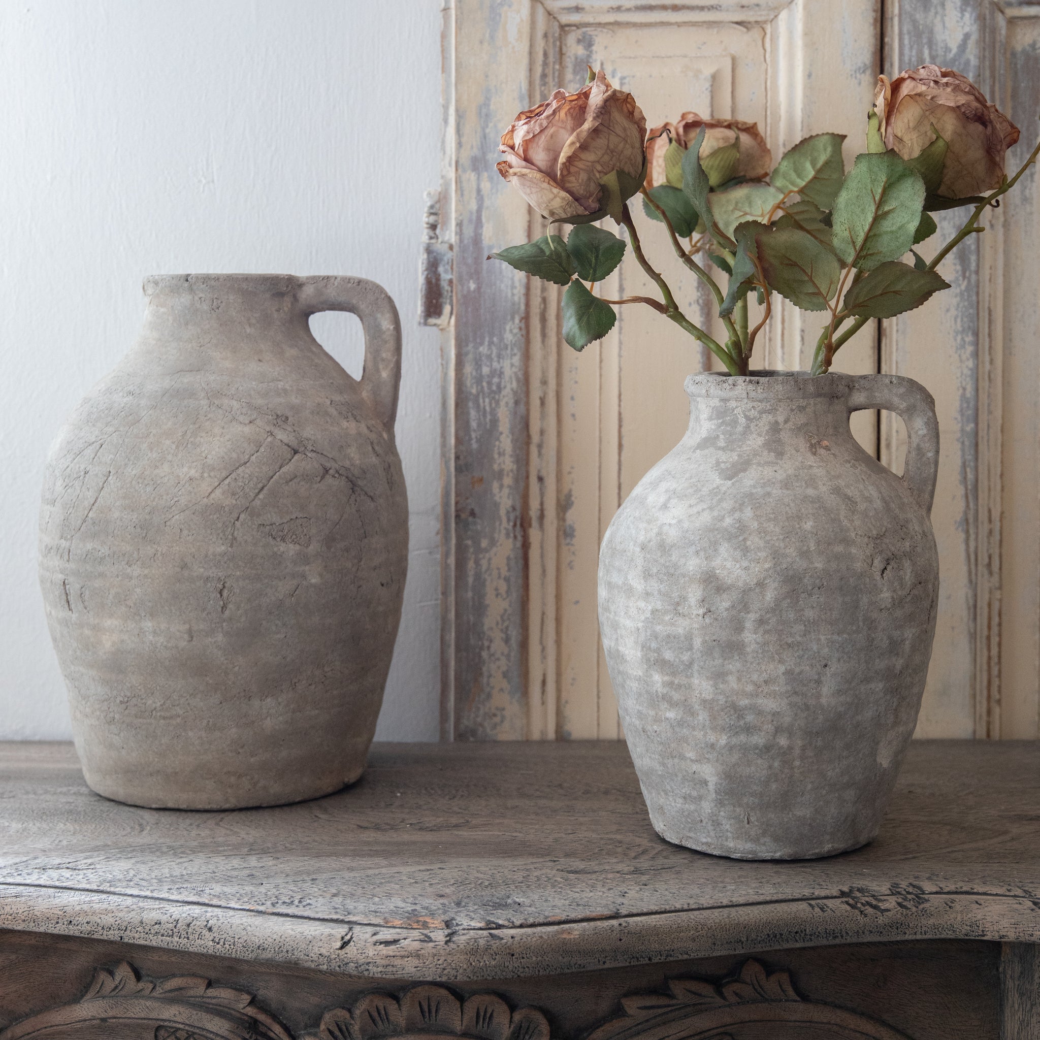 A must have interior accessory. A staple item with a rustic surface finish in natural colours. Display as pictured or dress with faux or natural foliage for a statement piece.