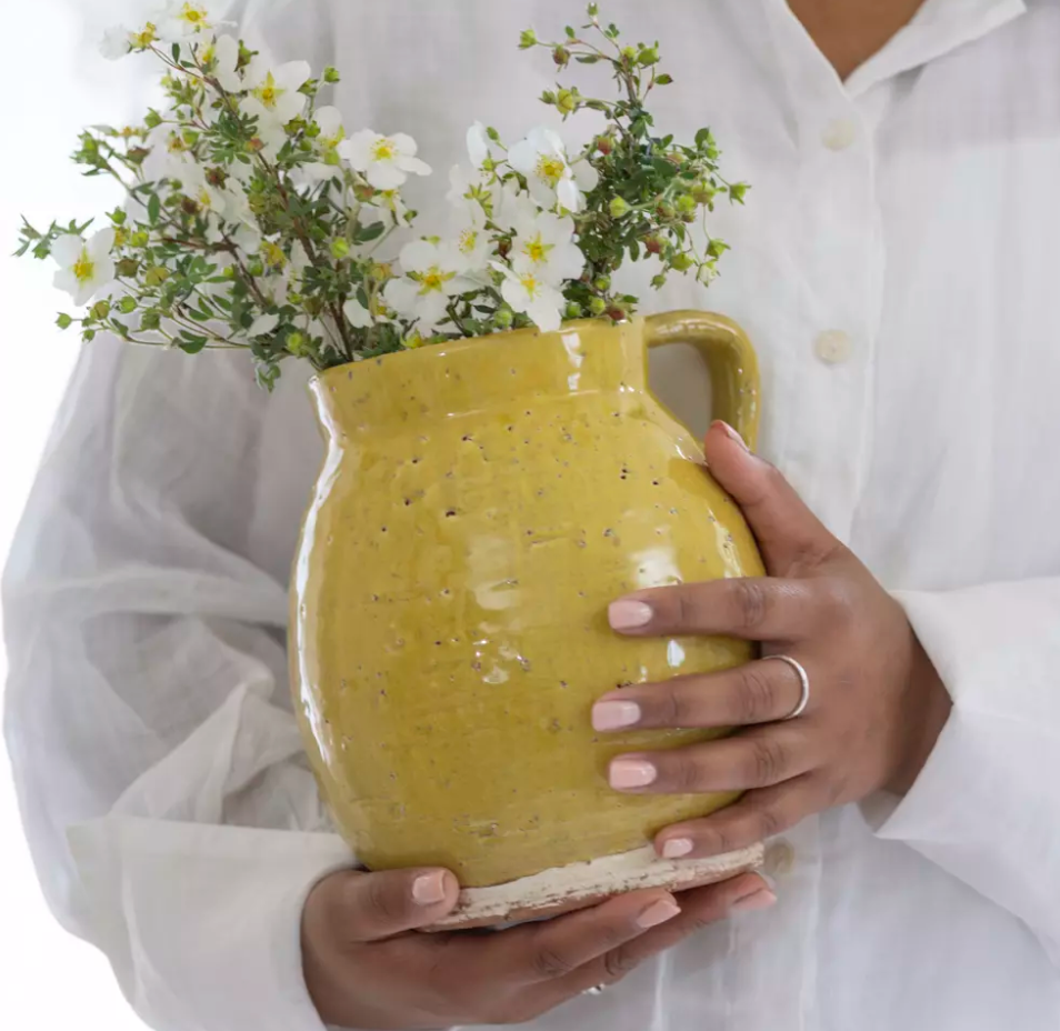 A beautifully handcrafted piece that combines rustic charm with versatile functionality. Measuring 19×17.5×19.5cm, this elegant jug in a warm Dijon hue is ideal for enhancing any table setting or serving as a stylish vase for summer florals. Its sturdy construction, combined with a smooth, glossy finish, ensures durability and longevity. Whether used for practical purposes or as a decorative accent, this jug seamlessly integrates both traditional and contemporary aesthetics, adding a sophisticated touch to your home with each one intricately handmade carefully.