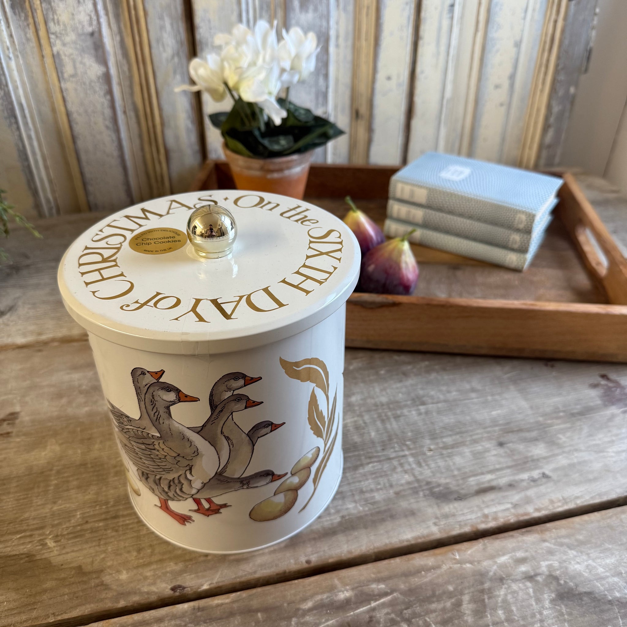 Part of the beloved “Twelve Days of Christmas” collection, this medium biscuit barrel features the whimsical 6 Geese a Laying design by Emma Bridgewater. Filled with scrumptious biscuits, it’s a festive favourite that’s both collectible and deliciously giftable. 150 (d) x 173mm. Fill weight: 480gm. Biscuit variety may vary from picture shown.