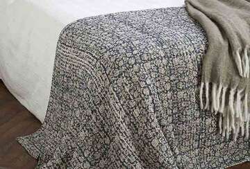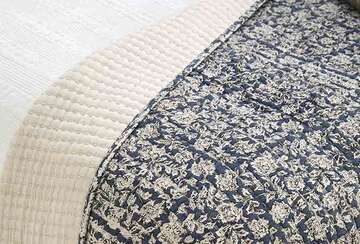 A 100% cotton quilted throw with a printed subtle floral design on the front and a plain reverse. Perfect for a bed, chair or sofa.
